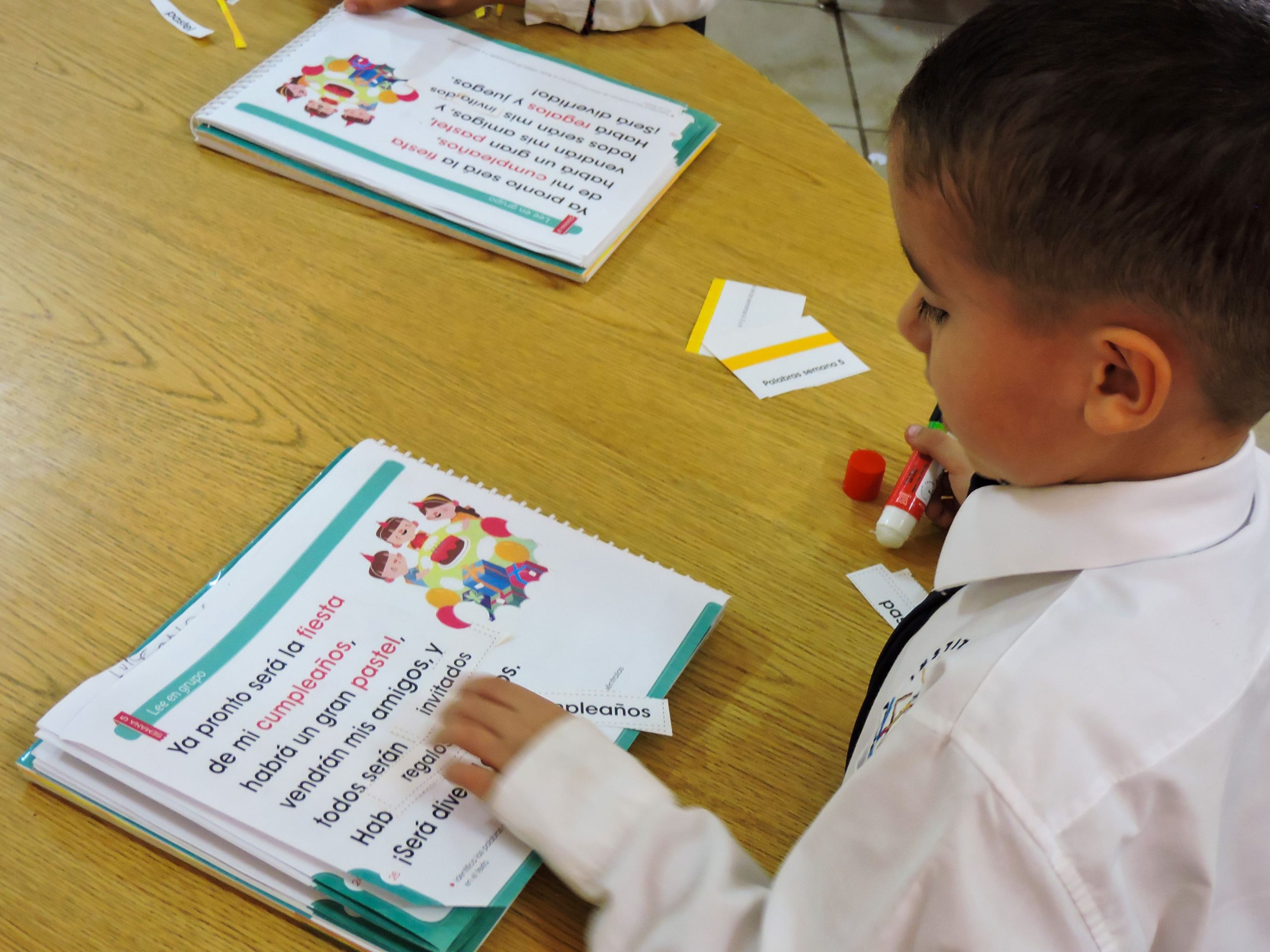 Para el proceso de lectoescritura se trabaja en la conciencia fonológica, la conexión entre sonidos y letras, y el desarrollo de palabras mediante juegos y actividades que estimulan varios sentidos. Combina métodos como el alfabético (sonidos y letras), el silábico (sílabas) y el global (palabras enteras), ajustándose continuamente al ritmo del niño y fomentando la lectura diaria y creativa, respaldada por tecnología y materiales visuales que mejoran la comprensión y la expresión.